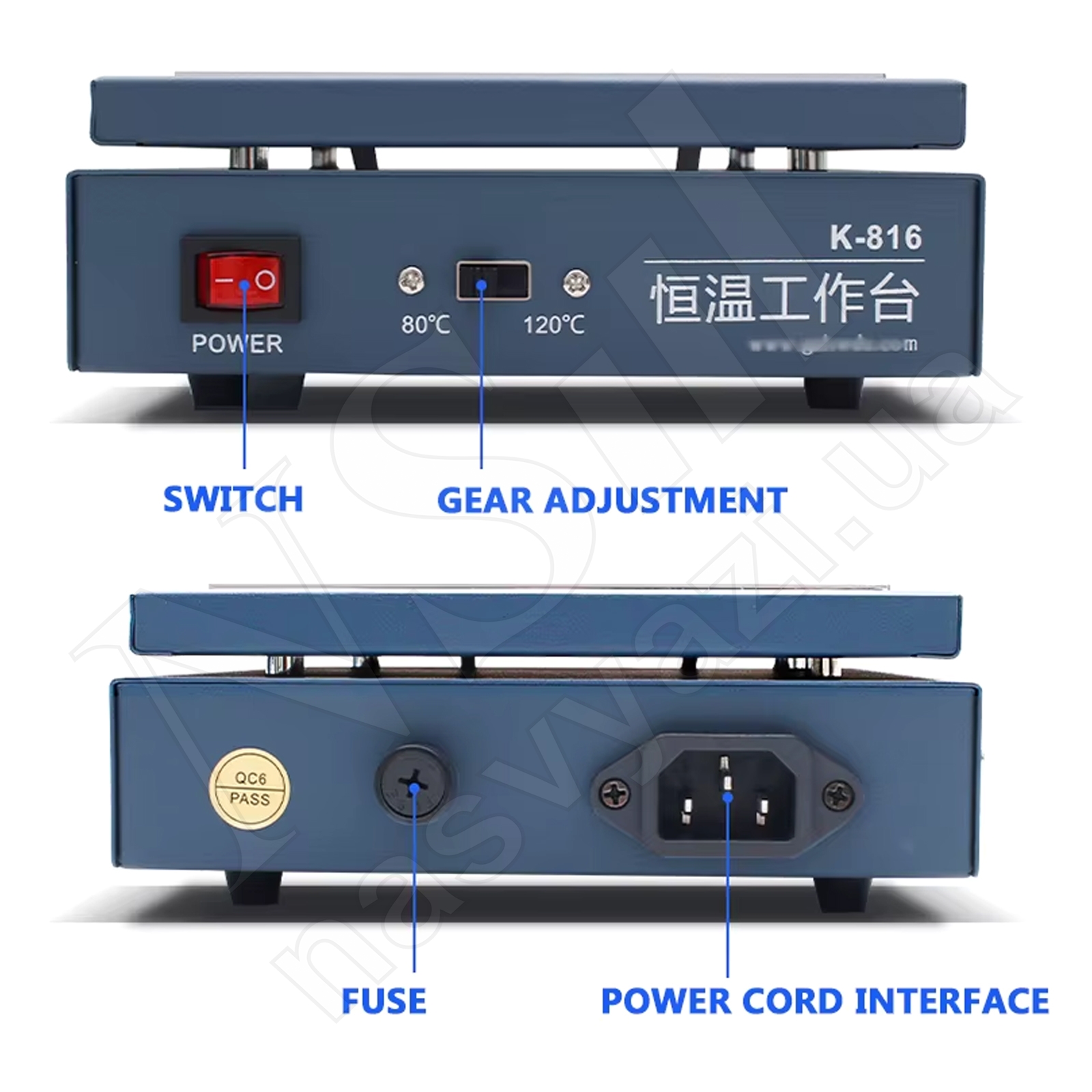 Страна производитель: Китай; Бренд: KAISI; Модель: K-816; Входное напряжение (В): 110/220; Частота (Гц): 50-60; Режим температуры (°C): 2 вида (80 и 120); Дисплей: светодиоды; Мощность (Вт): 270; Регулировка температуры: есть; Размеры (мм): 165 × 220 × 60; Вес нетто продукта (кг): 1,2.