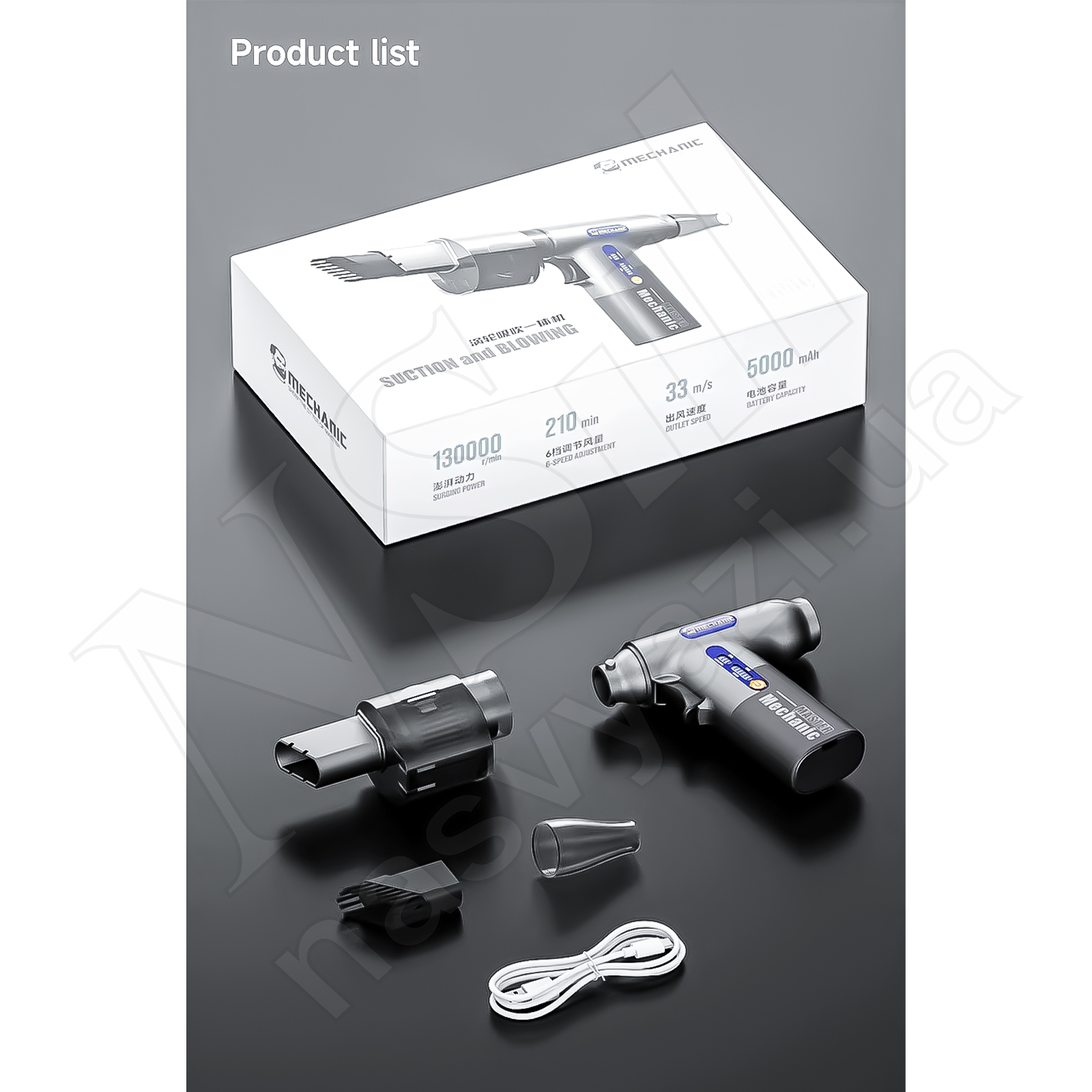 Характеристики Турбовентилятор-пылесос MECHANIC DB10 (40W, 5000mAh, 33м/с, до 130000об.мин)
