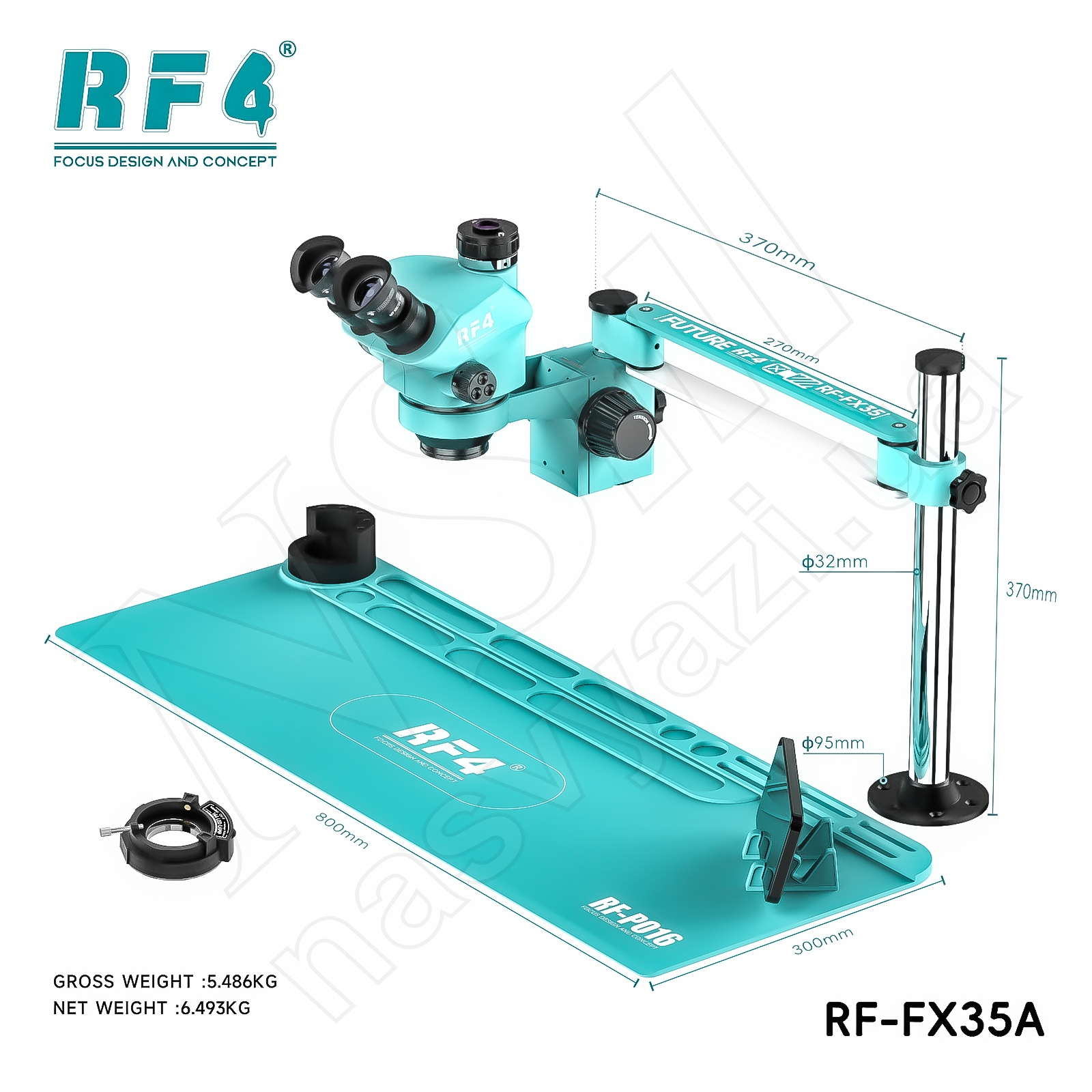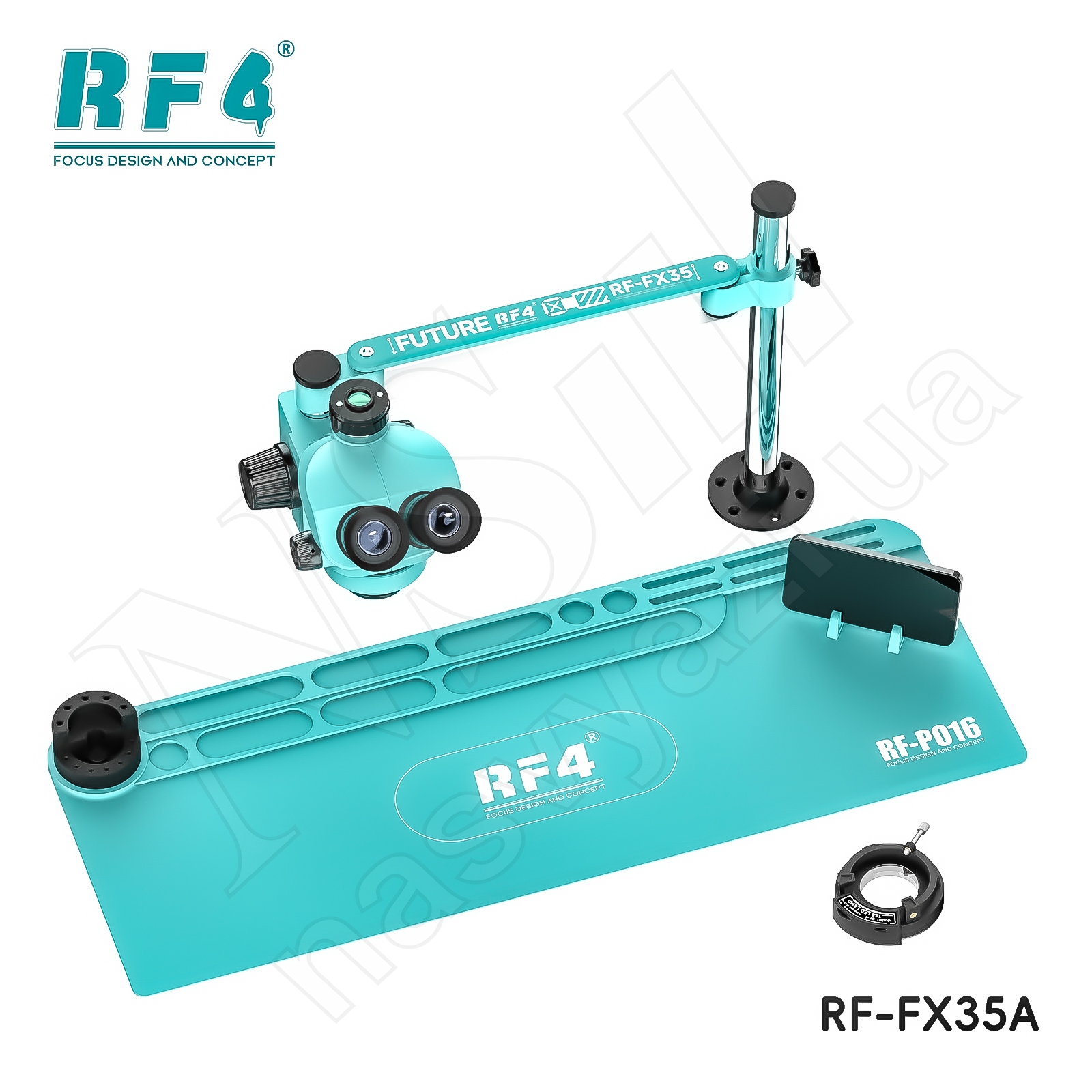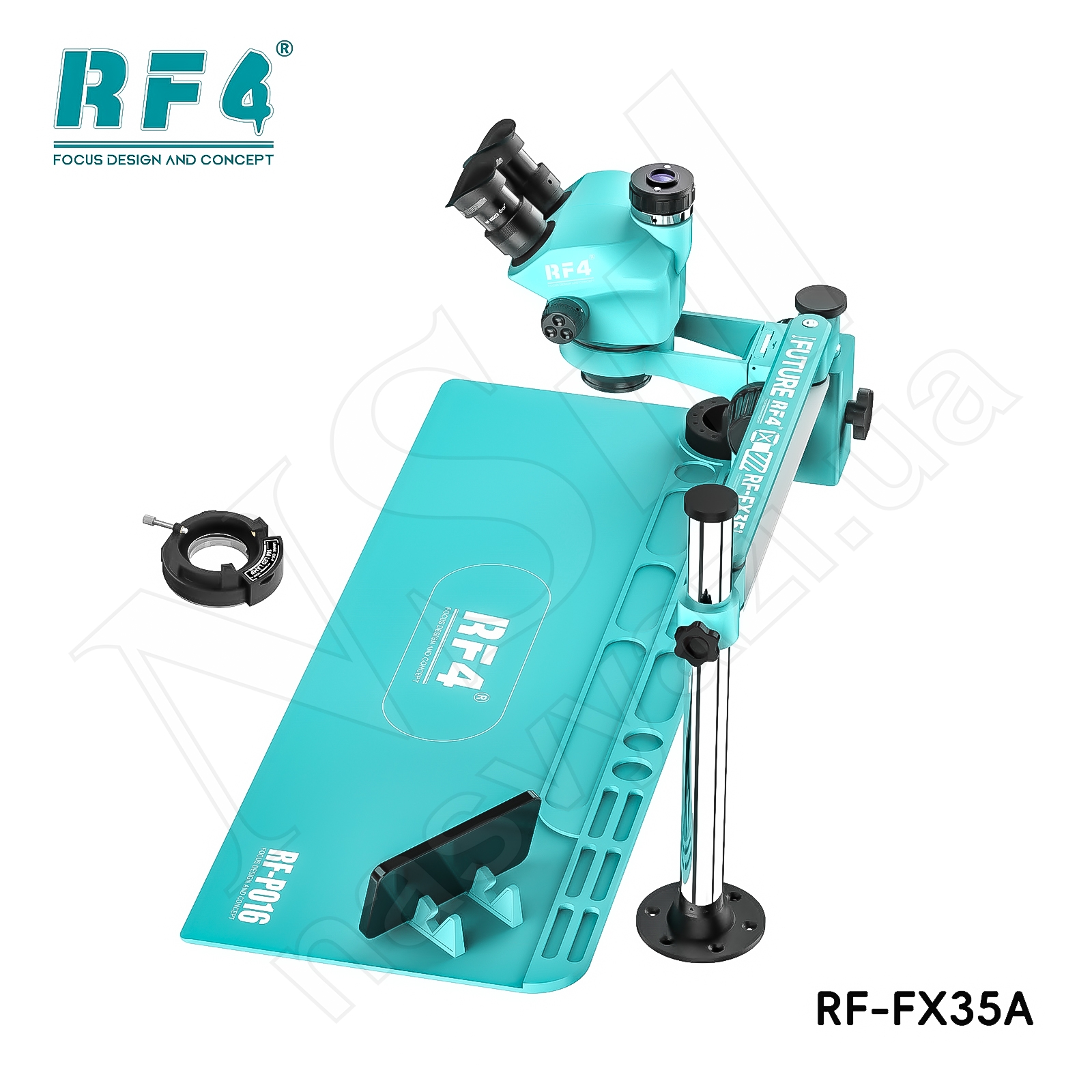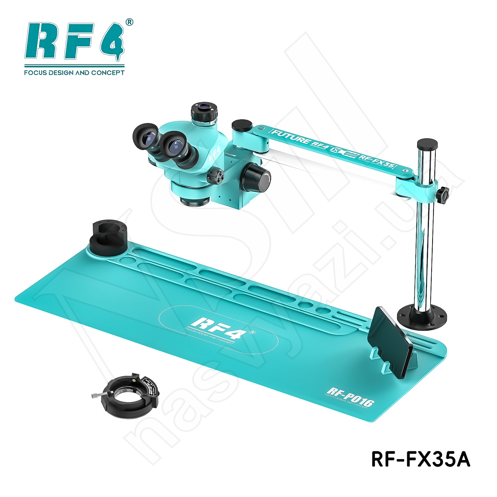 Микроскоп RF4 RF-FX35A тринокулярный с платформой RF-PO16 и подставкой (увеличение 7x-50x/подсветка 144 Led) голубой