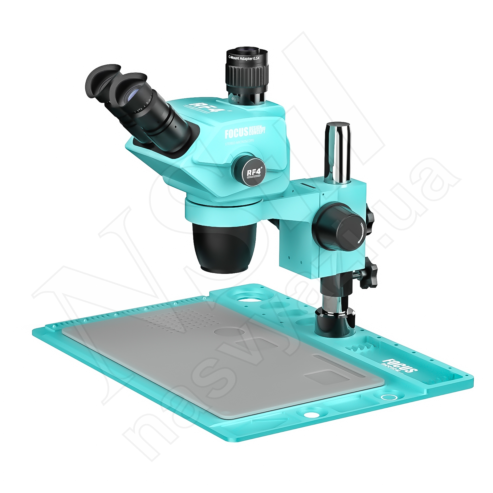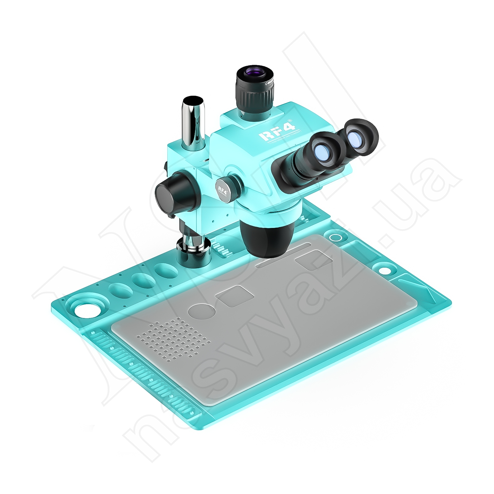 Микроскоп RF4 RF-6565Pro тринокулярный с платформой RF-D2 (увеличение 6.5x-65x/подсветка 144 Led) голубой