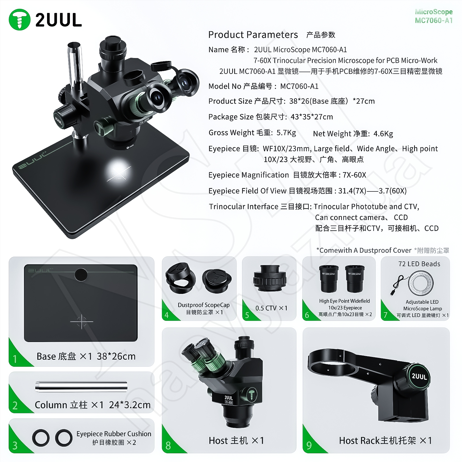 Микроскоп 2UUL MC7060-A1 тринокулярный (увеличение 7x-60x) черный