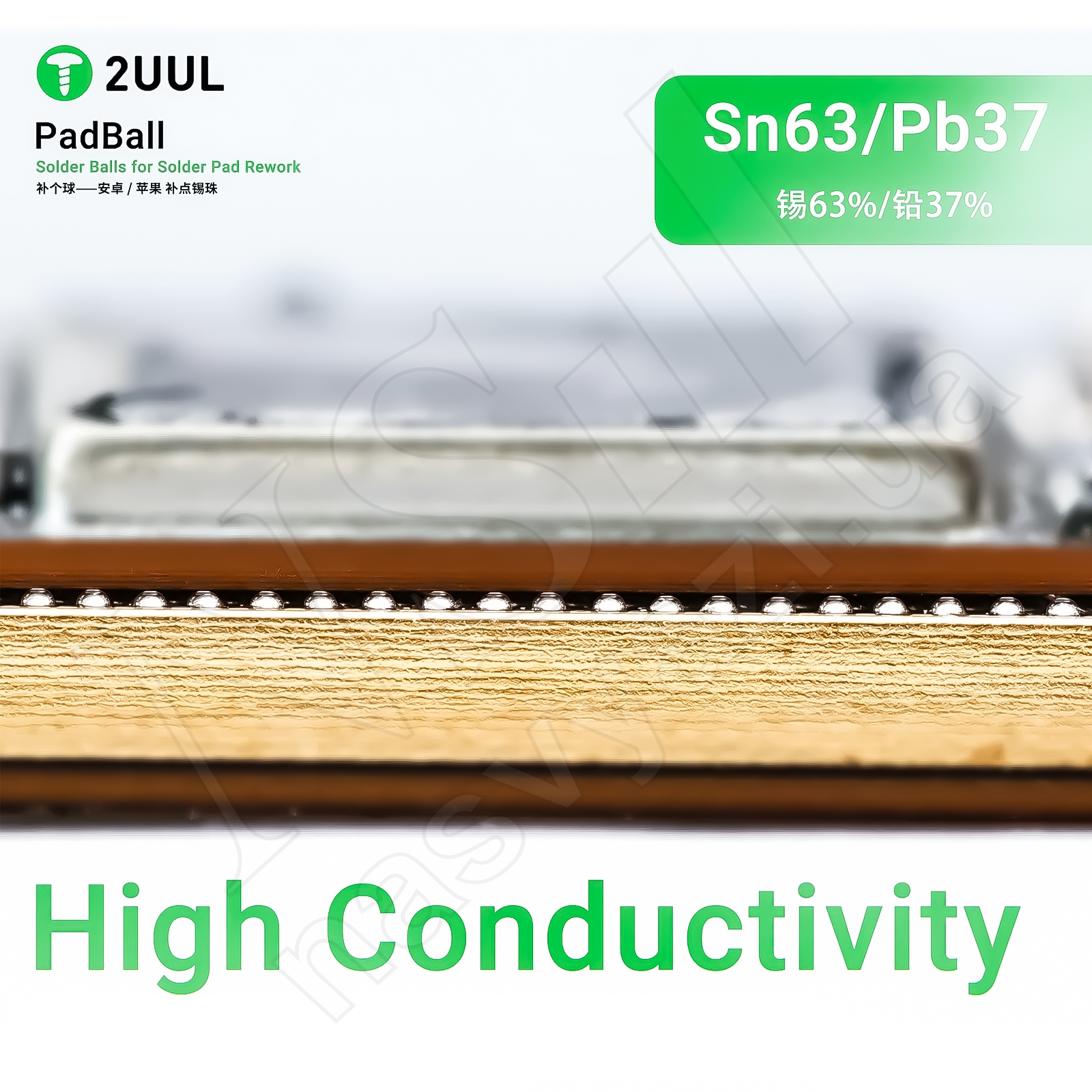 Шарики для пайки микросхем 2UUL PB01 Iphone (Sn63/Pb37) 0.2 мм/0.3 мм/0.45 мм/0.6 мм/0.76 мм (100000 шт.)