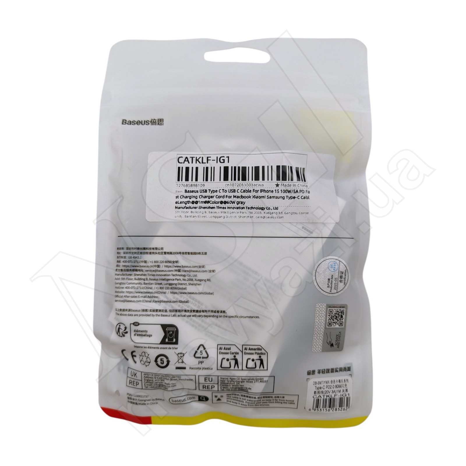 Описание Кабель Type-C-Type-C Baseus CATKLF-IG1 60W 1м серый