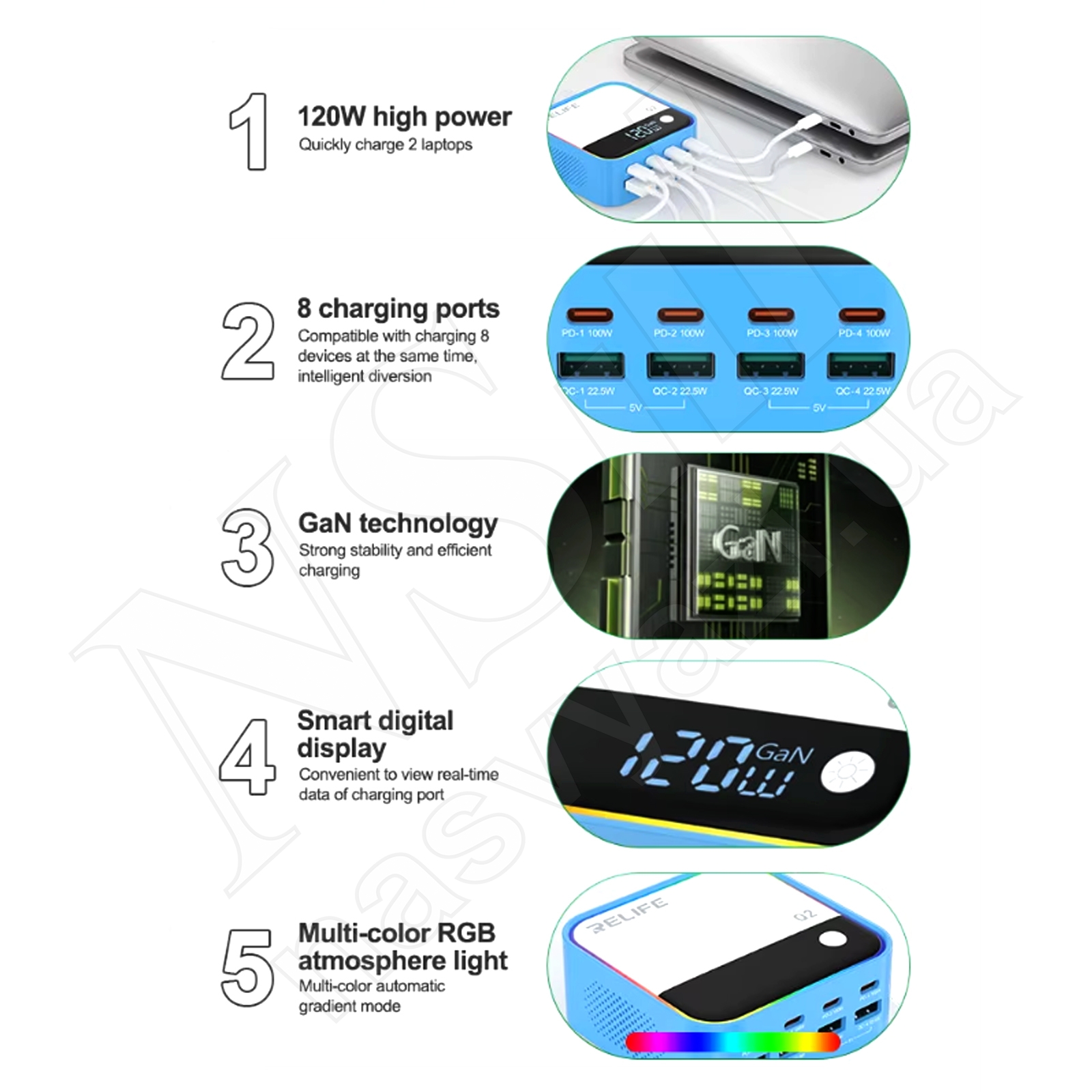 Relife Q2 120W GaN Desktop Charger — это мощное и умное зарядное устройство нового поколения:
