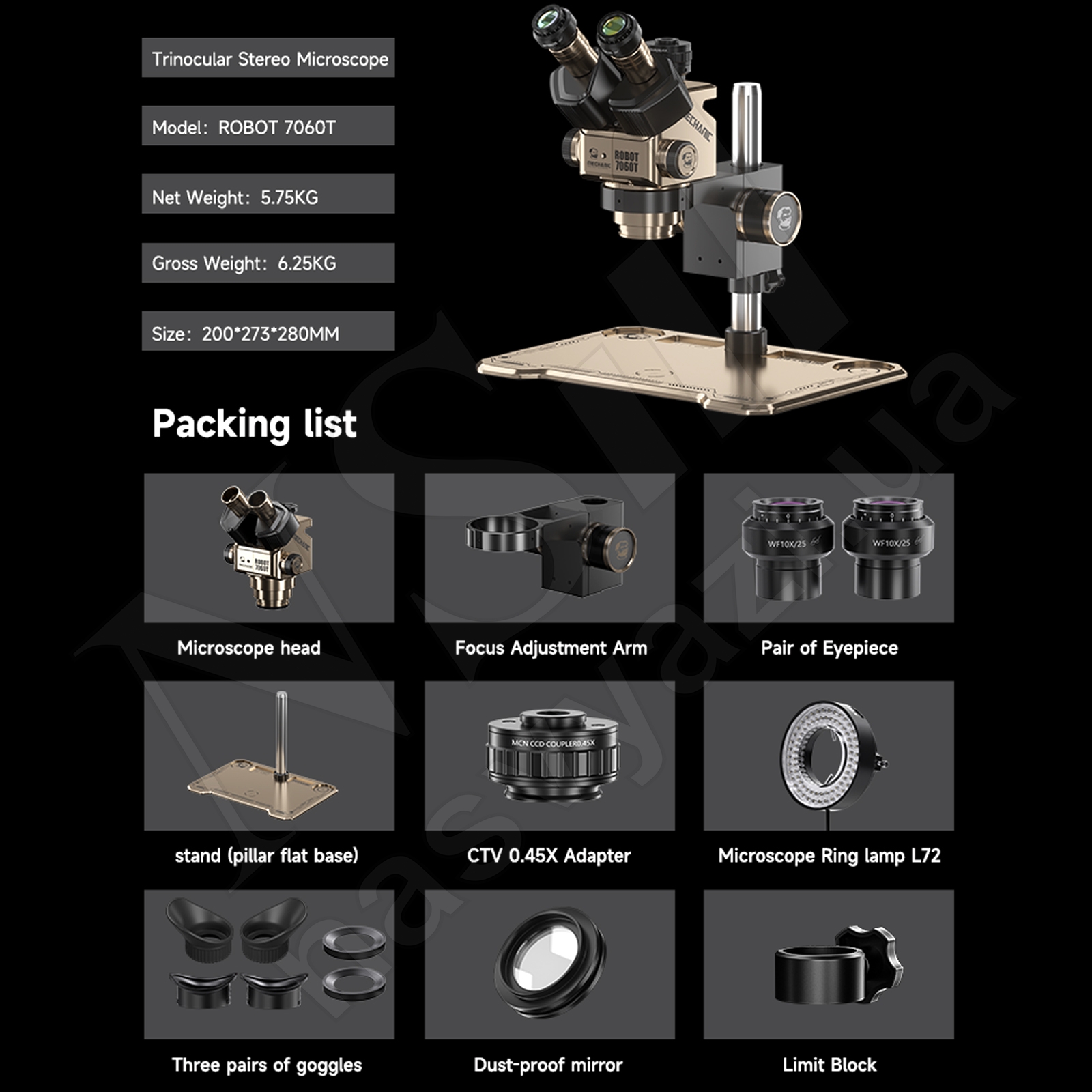 Микроскоп MECHANIC ROBOT7060T-TG тринокулярный (увеличение 7x-60x/подсветка L72) золотистый