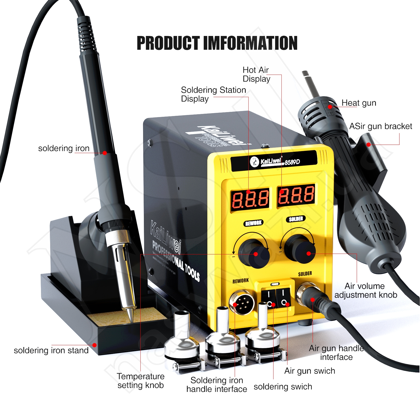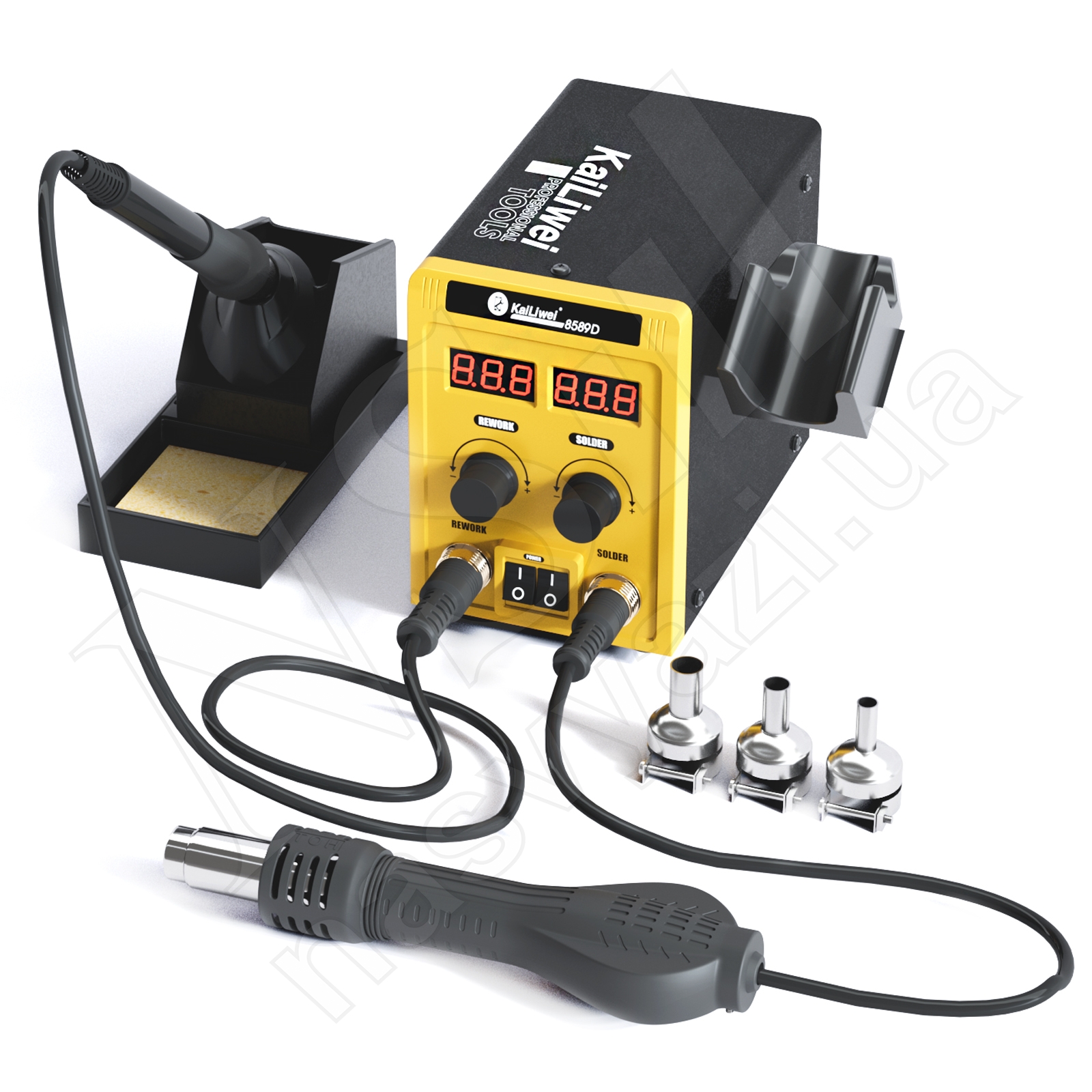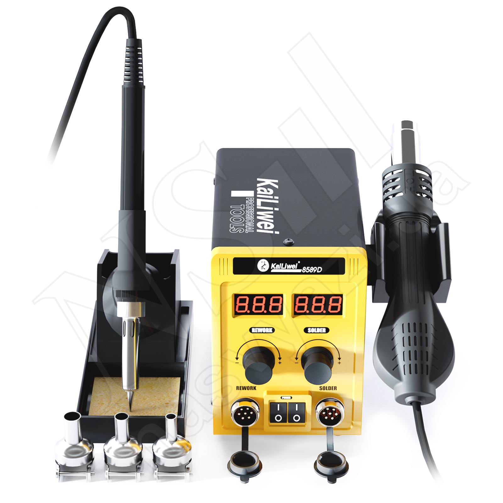 Описание Паяльная станция KAILIWEI 8589D (700W) турбинная (фен 100-500°С и паяльник 180-500°С)