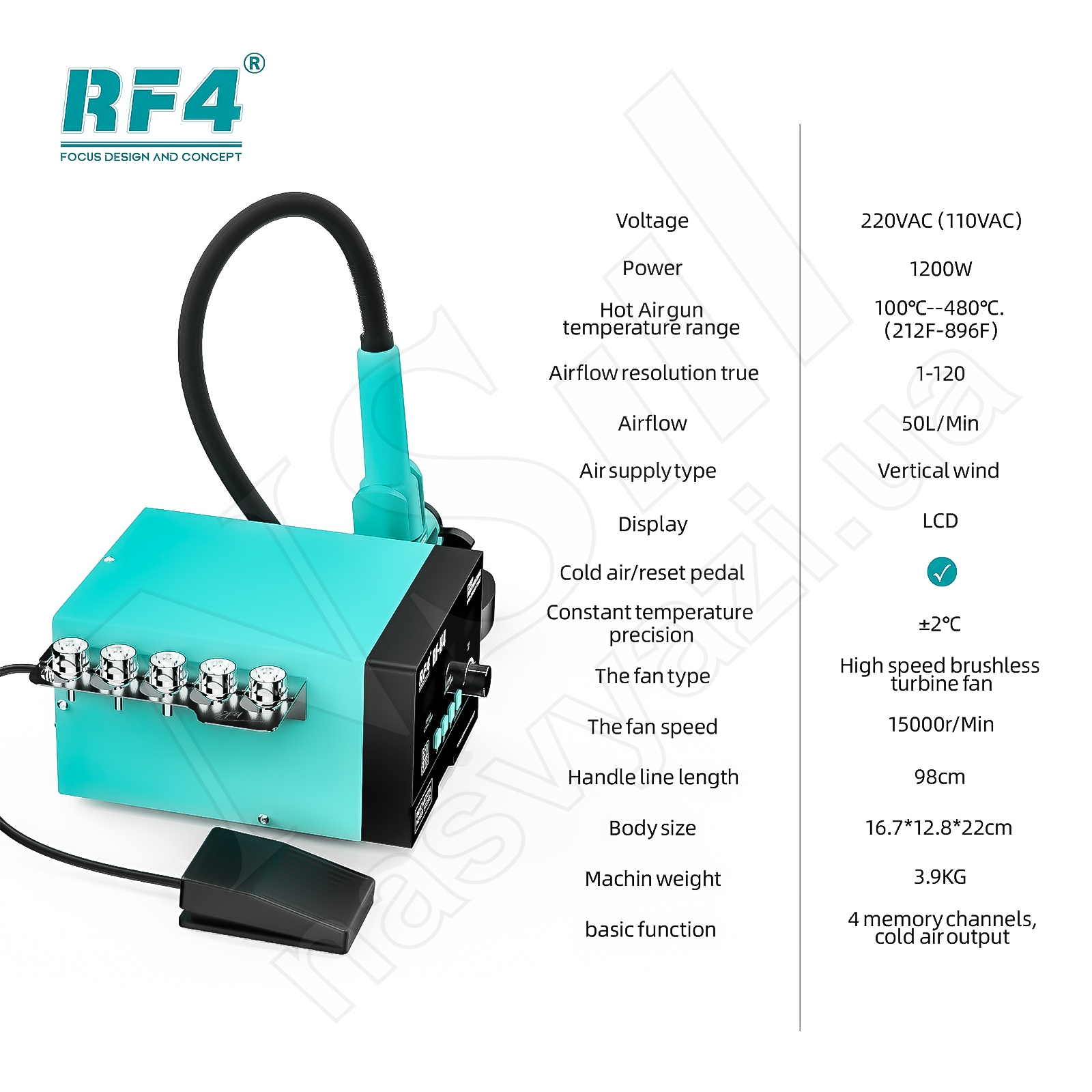 Паяльная станция RF4 RF-H4 (1200W) турбинная (фен 100-480°C) (4 канала памяти)