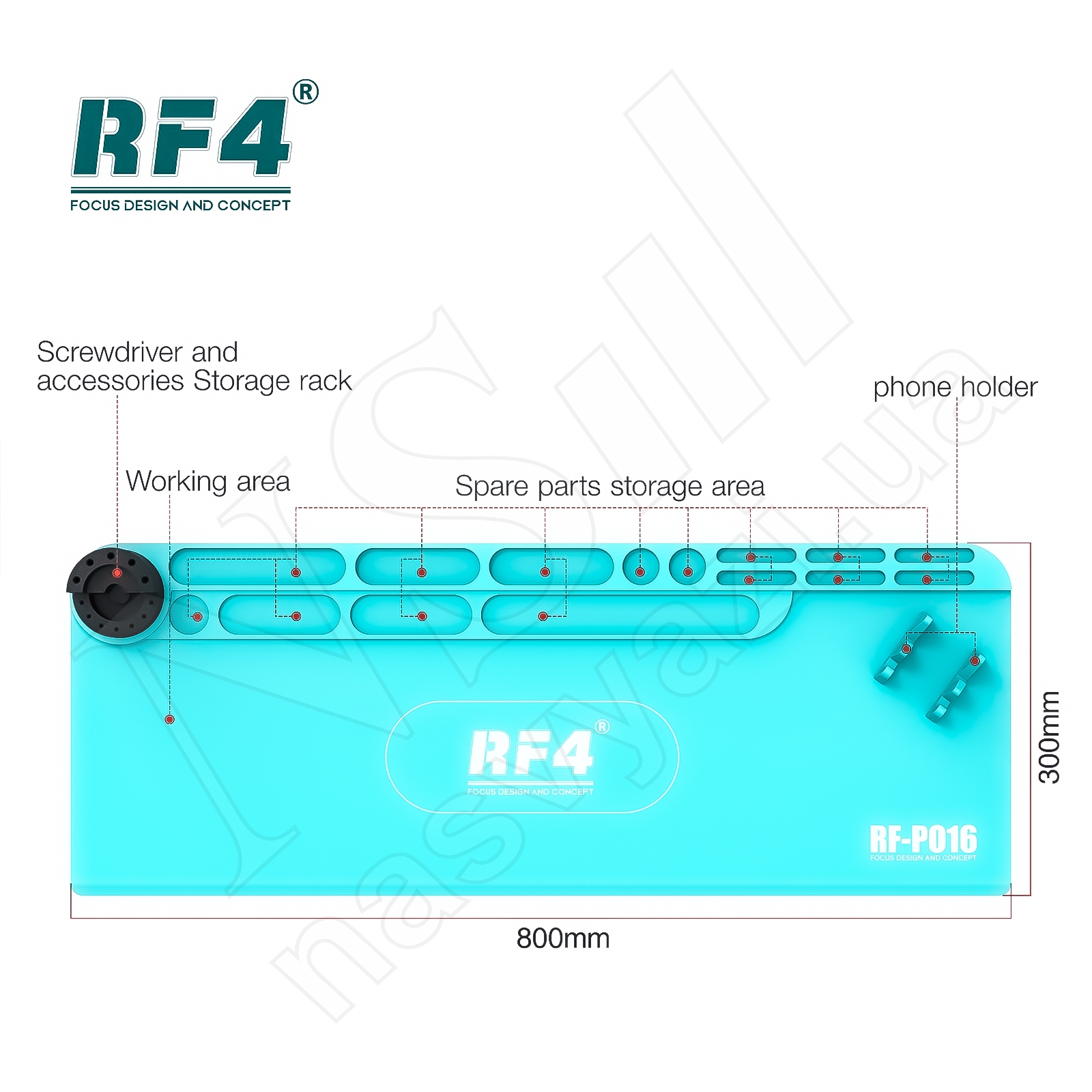 Коврик для пайки RF4 RF-PO16 (80см*30см) термостойкий силиконовый с ячейками под винты и подставкой (голубой)