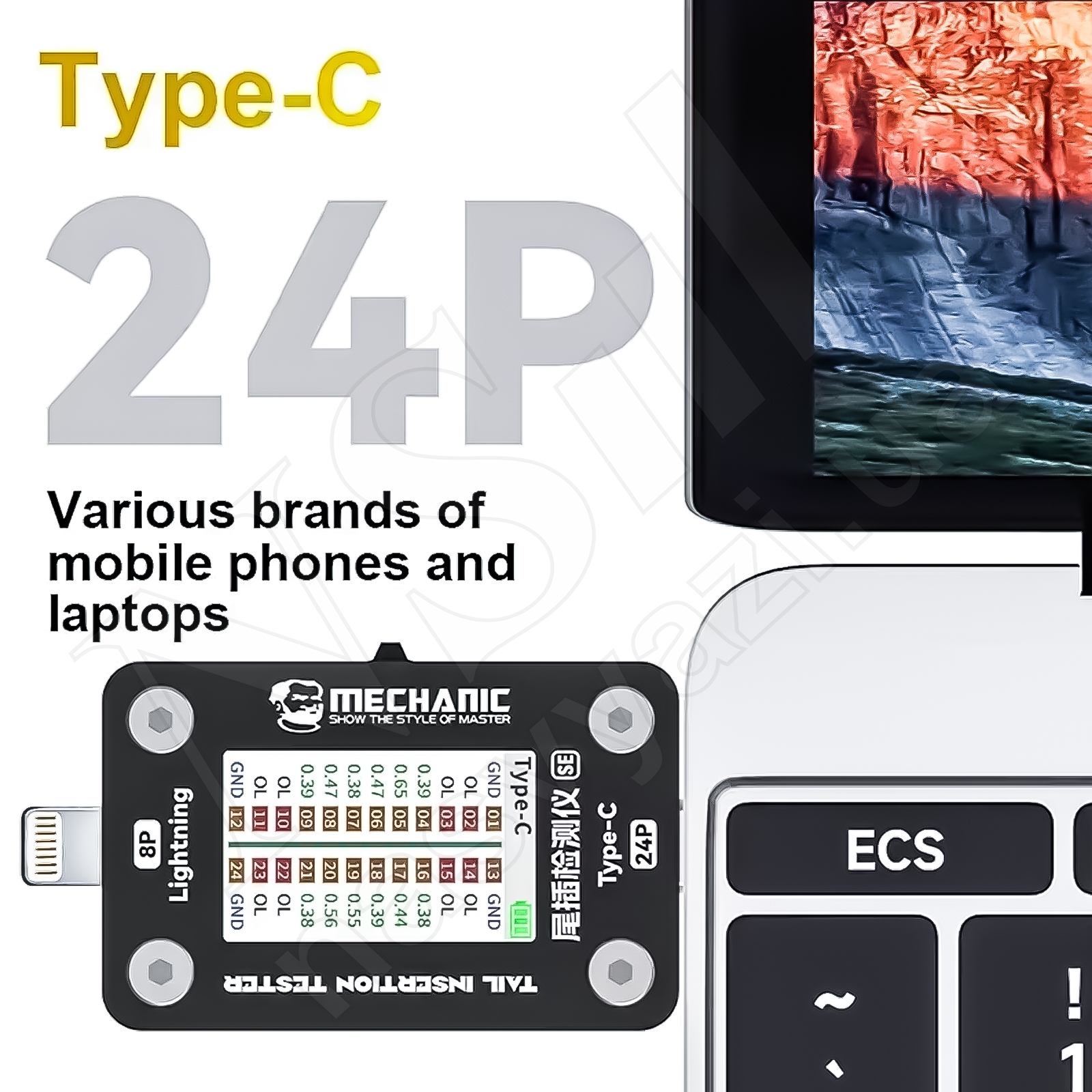 Тестер-USB MECHANIC T-824 SE (Type-C- Lightning) с цифровым дисплеем высокой точности — профессиональное решение для проверки кабелей и портов.