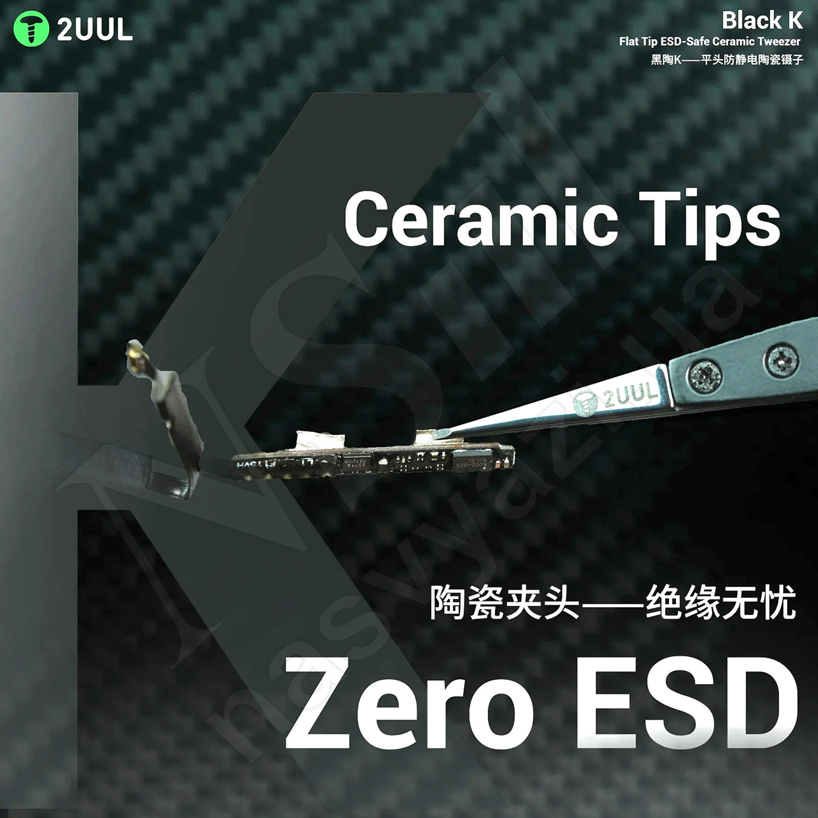 Пінцет 2UUL TW32 прямий (з керамічними кінчиками)